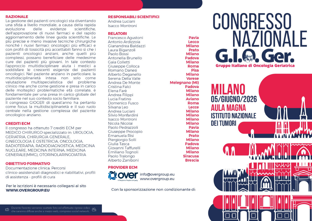 Aprile 12, 2026Aprile 12, 2026 Leggi l'articolo completo Tags: Doctors Related Post 15 Dic Eventi e Meeting – Upcoming Events Save the Date – VIII CONVEGNO NAZIONALE – “ONCOGERIATRIA VERSO IL FUTURO” Read More