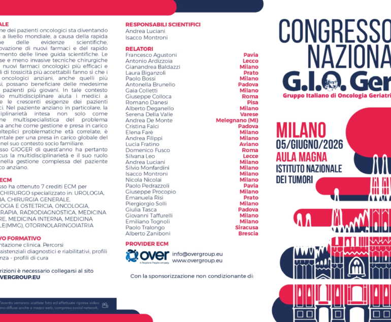 Dicembre 15, 2022Luglio 11, 2022 Leggi l'articolo completo Tags: Doctors Related Post 12 Apr Eventi e Meeting – Upcoming Events Save the Date – CONGRESSO NAZIONALE G.I.O.GER. – MILANO 05 giugno 2026 – AULA MAGNA Istituto Nazionale Dei Tumori Read More